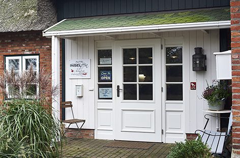 In einem kleinen Haus befindet sich das einzige Geschäft im Wyker Hafen. Unbedingt reingehen – es lohnt sich. Kleidung, Schmuck, Deko, Papeterie, Taschen. Mit Liebe ausgesucht. Und man(n) kann im Strandkorb vor der Tür ein Stück selbst-gebackenen Kuchen und eine gute Tasse Kaffee genießen.